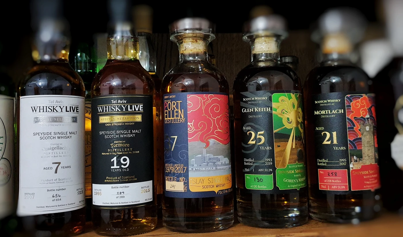 מדי פעם אנחנו רוכשים חביות וויסקי ומבקבקים אותן תחת הלייבל שלנו, גורנ'ס וויסקי.